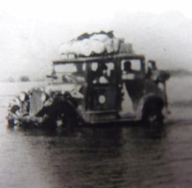 London taxi crossing a ford in Afghanistan