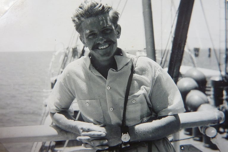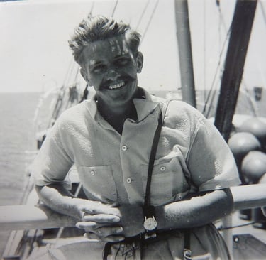 On the five-day ocean passage to Penang, Eric ventured to most parts of the ship including the bridge and wireless room. He was shown how to use a sextant to shoot the sun and establish the ship’s location. The only place he didn’t go was the engine room. Nor did he want to. Even at its door, it was like a blast furnace.